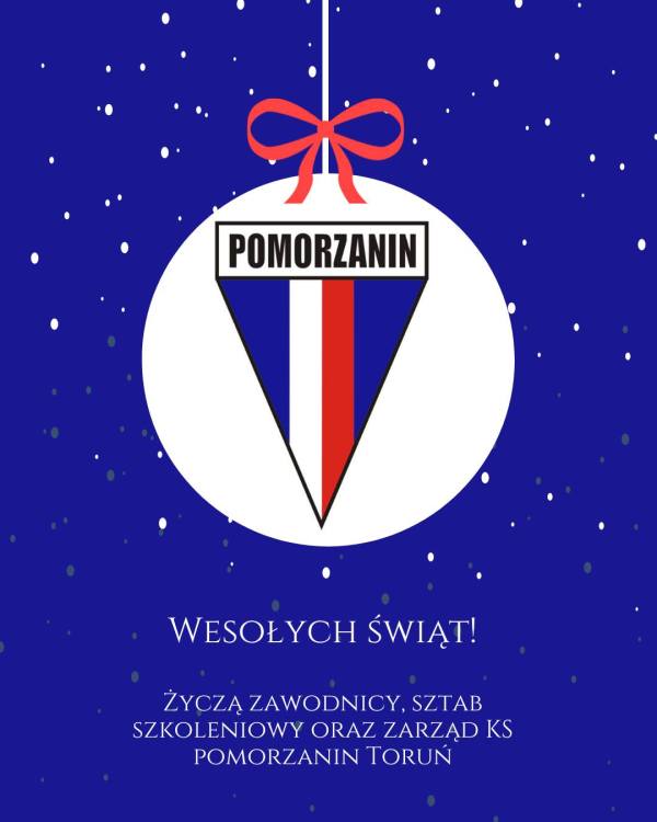 Z okazji zbliżających się Świąt Bożego Narodzenia chcielibyśmy życzyć wszystkim naszym kibicom i sympatykom zdrowych i spokojnych dni w gronie najbliższych. Zawodnicy, sztab szkoleniowy oraz Zarząd KS Pomorzanin Toruń