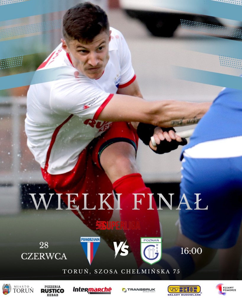 W pierwszym meczu finałowym Hokej Superligi HK Rustico Pomorzanin Toruń zagra u siebie z WKS Grunwald Poznań Poznań. Mecz zostanie rozegrany 28 czerwca o godz. 16:00 na boisku przy ul. Szosa Chełmińska 75 w Toruniu.