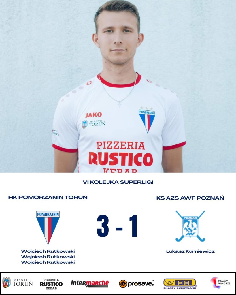 W 6. kolejce Hokej Superligi HK Pomorzanin Toruń pokonał KS AZS AWF Poznań 3:1. Hat-trickiem popisał się nasz SUPERSTAR WOJTEK RUTKOWSKI!