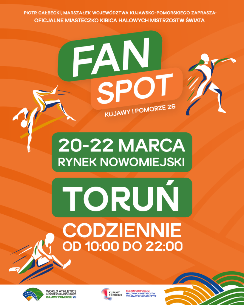 Kujawy i Pomorze światową stolicą lekkiej atletyki! 20–22 marca spotkajmy się w Miasteczku Kibica i wspólnie przeżyjmy Halowe Mistrzostwa Świata w Lekkoatletyce Kujawy Pomorze 26 – wydarzenie, którego regionem gospodarzem jest Województwo Kujawsko-Pomorskie, Partner naszego klubu. Bądźcie z nami i poczujcie sportowe emocje na żywo.