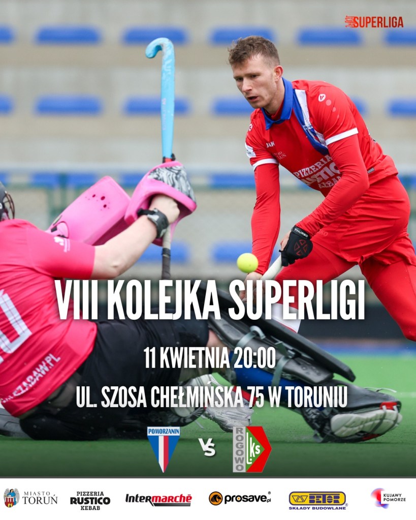 W 8. kolejce Hokej Superligi HK Rustico Pomorzanin Toruń zagra u siebie z LKS Rogowo. Mecz zostanie rozegrany 11 kwietnia o godz. 20:00 na boisku przy ul. Szosa Chełmińska 75 w Toruniu.